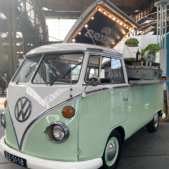 Na een lange tocht over zee, vele controles en menig complimentjes van allen die hem in het echt hebben mogen aanschouwen, is hij in 2018 omgetoverd tot een prachtige mintgroene Foodtruck die al op menig event heeft mogen schitteren.