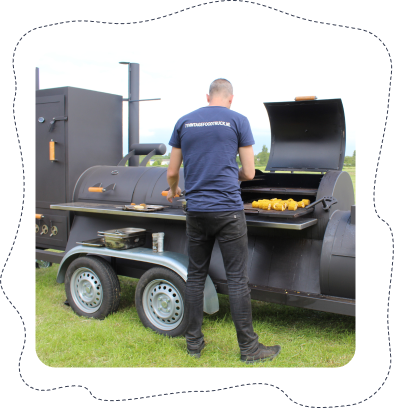 Naast prachtige Foodtrucks hebben we ook een mooie grote Oklahoma Smoker. Hiermee kunnen we grote groepen voorzien van een BBQ en BBQ bites. Deze Oklahoma Smoker is speciaal voor ons ontworpen en gebouwd.